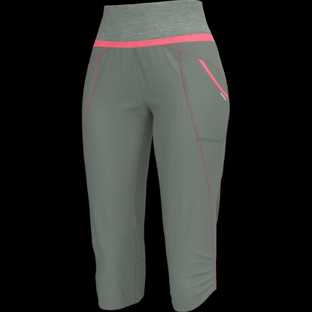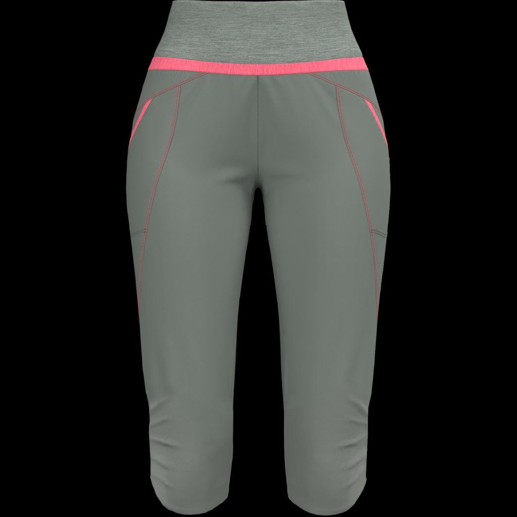 3/4 šortky pod kolená pre dodatočnú ochranu počas trekingu. Vyrobené z luxusnej plátennej látky, chladivé a elastické. Je to odev plný pohodlia do hôr aj do mesta. Vyniká tiež svojimi líniami, ktoré sú vďaka novým strihom ešte ženskejšie. Látka napriek tomu, že je veľmi mäkká, má vodoodpudivú úpravu a je odolná voči roztrhnutiu a oderom.